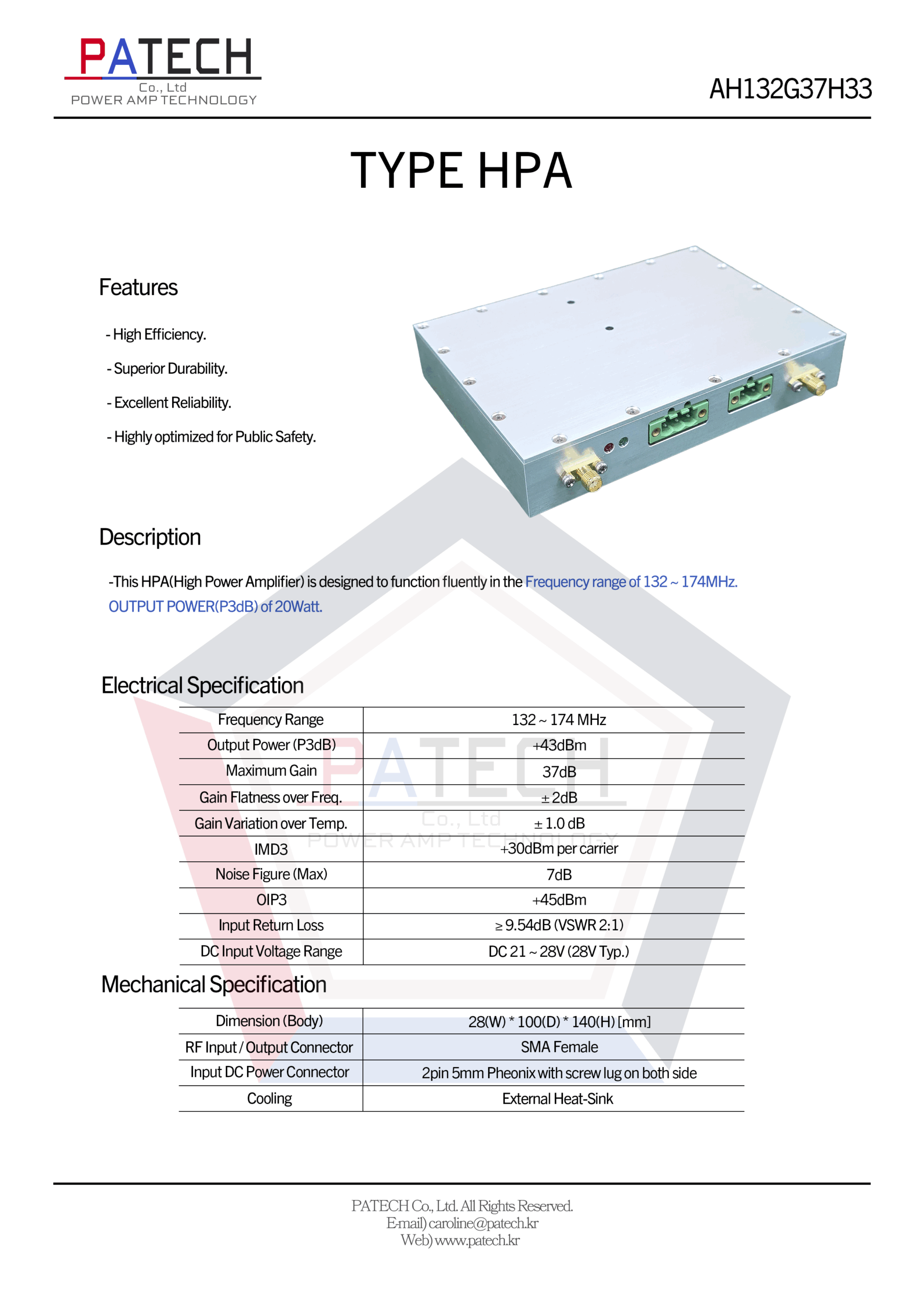 132~174 MHz20W28V4.8A28*100*140mmOpen