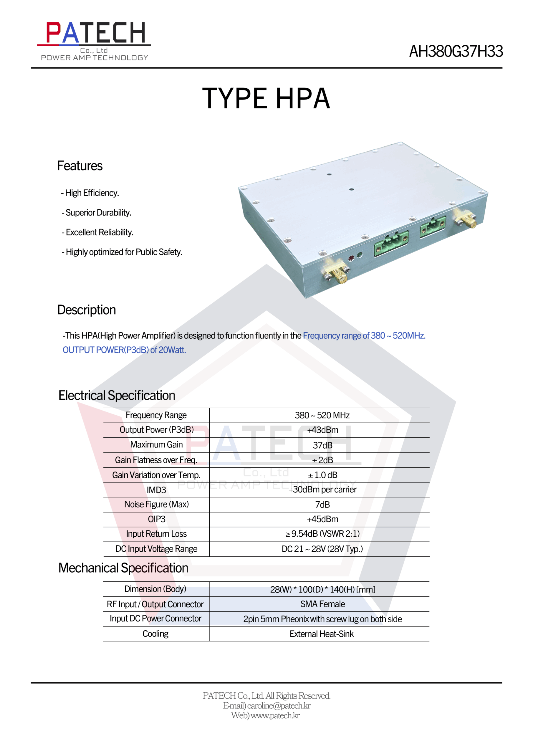380~520 MHz20W28V3.8A28*100*140mmOpen