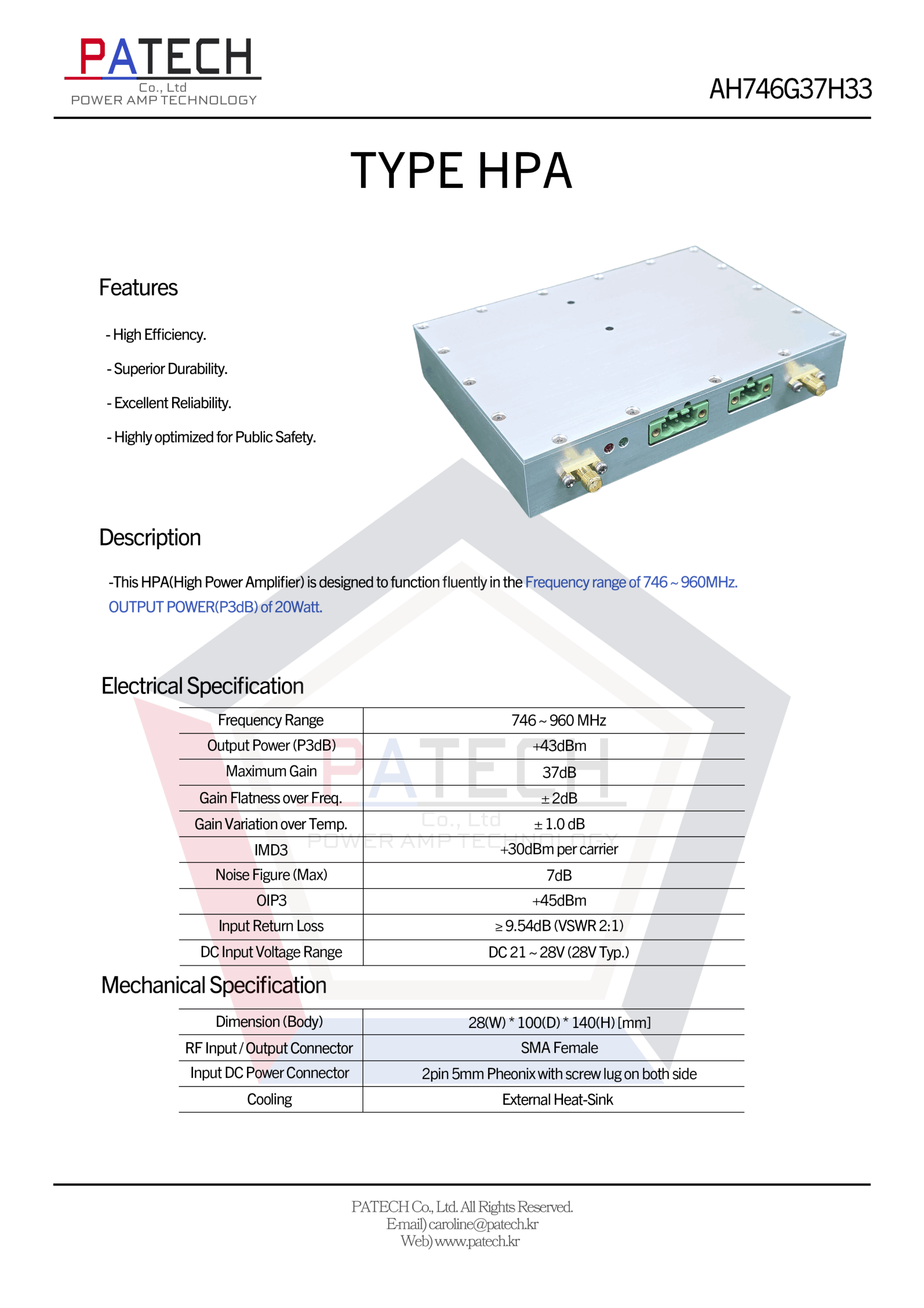 746~960 MHz20W28V3.0A28*100*140mmOpen